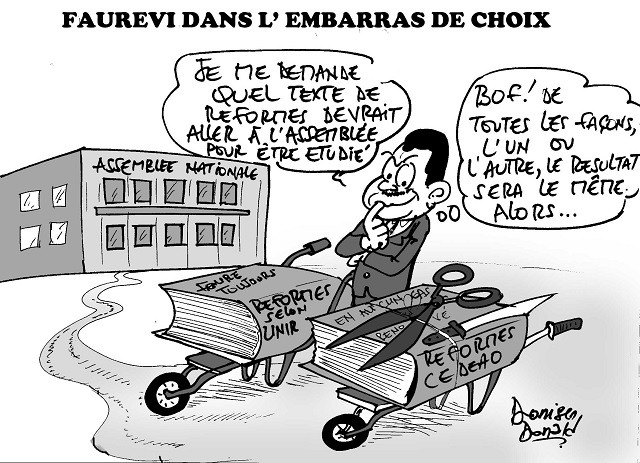 C’était LA promesse faite par les gouvernants et les députés new brand qui s’étaient engagés à en faire la toute première préoccupation de la nouvelle législature. Le commun des Togolais s’attendait ainsi à ce que ce soit vraiment le tout premier chantier engagé. Mais à la rentrée parlementaire, les honorables nommés députés se sont consacrés à autre chose, ignorant royalement la question des réformes alors qu’elle devrait être prioritaire non seulement au regard des promesses, mais aussi et surtout des enjeux de leur matérialisation. L’apaisement du climat politique en dépend énormément. Qu’à cela ne tienne, après plusieurs semaines de congés, les « élus du peuple » ont repris vendredi le chemin de l’Assemblée nationale, à la faveur de l’ouverture de la session extraordinaire, et le chantier de la mise en œuvre des réformes constitutionnelles, institutionnelles et électorales devra enfin être entrepris.
