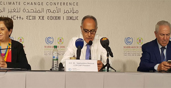 Positif et optimiste, le Président de la COP22 déclare: « Bonne nouvelle ! 105 Parties ont ratifié l’Accord de Paris à ce jour et nous encourageons les autres à faire de même ». Et afin d’accélérer la ratification de l’Accord, M. Salaheddine Mezouar a précisé que la présidence avait « soumis l’Appel de Marrakech destiné à accélérer la dynamique de l’Action climatique à toutes les Parties ». A ce sujet, l’Ambassadeur pour la négociation multilatéral, M. Aziz Mekouar a précisé : « nous avons consulté tous les groupes sur l’Appel de Marrakech. Il s’agit d’un appel à l’action et à la mobilisation qui sera lu durant le segment Haut Niveau ». En ce qui concerne les négociations, M. Mezouar a déclaré qu’elles « avancent bien, dans un processus inclusif avec l’ensemble des Parties ».