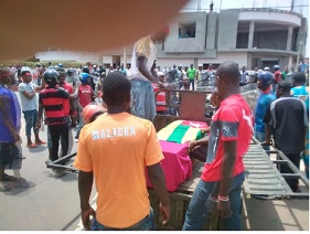 En effet, aux premières heures de la journée, les militaires armes au poing se sont positionnés aux points névralgiques de la ville. Ce semblant de calme n’a été rompu que par les familles et proche de la victime tuée hier par balle militaire, partis, de Zongo, banlieue nord de la capitale, aux cris de « Allah Ak’bar », Dieu est grand en Arabe, ont traversé la ville avec le cercueil vide pour aller retirer le corps de leur fils. Face à la furie de la foule, le personnel de la morgue a pris ses jambes au cou. Selon, les informations reçues, les jeunes de Zongo auraient défoncé la porte de la morgue pour faire sortir la victime. Le corps sans vie de l’infortuné Alabi Nadjinoudine posé dans le cercueil recouvert des couleurs nationales était prêt pour partir que surgit les forces de l’ordre qui intimaient l’ordre de faire demi tour car l’ordre a été donné de ne pas récupérer pour les besoins de l’enquête. Des altercations ont opposé les deux camps. Finalement le corps a été retourné à la morgue. Ce n’est qu’en début de soirée qu’il a été remis à la famille pour inhumation à Agoè Zongo sous un déploiement militaire.