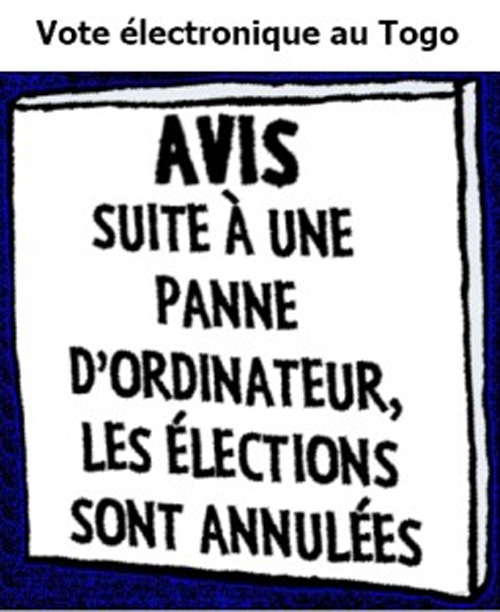 Bref, la volonté du Peuple togolais – mal représenté – n’a pas été prise en compte par ceux qui ont été invités à la table du « dialogue ». Au cours des discussions assortie d’un manque de transparence manifeste, la partie censée représenter le Peuple togolais a dû avaler l’inacceptable, à savoir passer par la CEDEAO pour faire adopter une feuille de route sans chronogramme et adopter aux forceps le principe d’élections bâclées et en urgence. Entretemps, la société belge ZETES, unilatéralement choisie par le Gouvernement été sans appel d’offres, a mis en place un système de vote électronique fallacieux – déjà éprouvé dans d’autres pays d’Afrique -, où la règle est claire : « qui perd, gagne » ! C’est cela que proposent ensemble et en synarchie, Faure Gnassingbé et son système militaro-civil, la CEDEAO, « le G5 constitué de quatre chancelleries occidentales et les Nations Unies en poste au Togo, et par mimétisme l’Union africaine et les pays occidentaux parties prenantes de la crise togolaise.