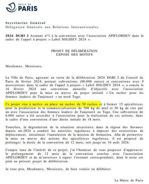 Un projet apicole mis en œuvre dans le nord du Togo, à Tandjouaré, se retrouve au cœur d’une controverse politique inattendue en France. Financé par une subvention de la Ville de Paris dans le cadre de la coopération internationale, ce programme d’appui à l’autonomisation économique des femmes est aujourd’hui instrumentalisé dans le débat parisien sur la gestion des finances municipales.