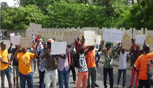 « On a été confronté à une horde de cordon de gendarmes et de policiers. Ils ont bouclé systématiquement tous les points d’accès à l’Ambassade déviant tous les usagers de la route qui passaient par ces voies. Les manifestants constitués de jeunes et de femmes qui se sont mobilisés devant l’Ambassade étaient repoussés violemment par les forces de sécurité qui n’ont pas hésité à tirer en balles en caoutchouc. Donc a dû reculer pour venir sur le boulevard qui jouxte l’ambassade pour exprimer notre ras-le-bol. On a exhibé nos pancartes pour faire passer notre message », a déclaré Jean Eklou, le président de la jeunesse de l’ANC au cours d’un point de presse tout juste après la manifestation.
