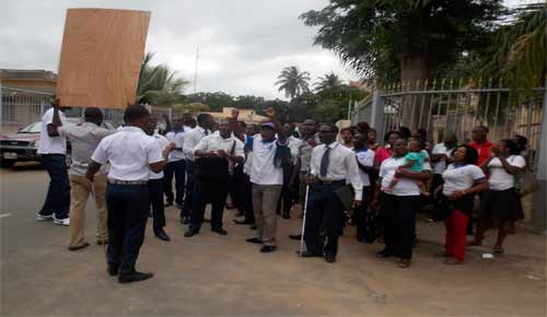 A Lomé, massés devant les grilles du ministère, ces enseignants donnaient de la voix sous le regard curieux des passants.