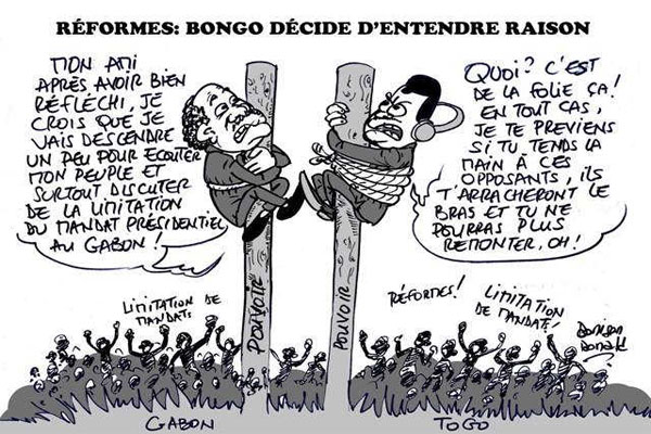 Au Gabon, Ali Bongo semble s’inscrire dans cette dynamique. Le 28 juin 2016, devant les deux chambres du parlement, le président gabonais, acculé par ses opposants, a affirmé qu’il est désormais ouvert à une révision de la Constitution pour la limitation du mandat présidentiel. «Je suis prêt à discuter de tout, y compris des mandats politiques», a-t-il lâché. L’opposition gabonaise n’a de cesse de réclamer la révision de la Constitution, notamment la limitation du mandat de cinq ans renouvelable une seule fois et la restauration du second tour des élections.