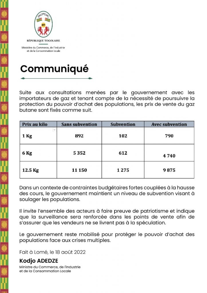Il y a quelques jours, Kodjo Adedze, le ministre togolais du commerce, de l’industrie et de la consommation locale a approuvé l’augmentation du prix du gaz butane.