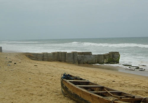 Depuis deux (2) ans, sont construits sur la plage de Gbodjomé, des épis-puits qui ne sont rien d’autre que des puits normaux d’une hauteur de 6 à 8 mètres, remplies de bétons et qui empêchent les vagues de ruiner la plage.