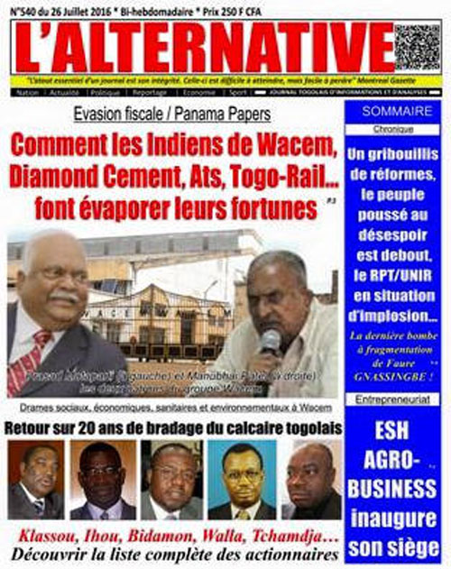 Le Togo s’est engagé depuis quelques années dans un programme international dénommé Initiative pour la Transparence dans les Industries extractives (Itie). Ce dispositif tripartite est organisé autour de trois structures. Un secrétariat qui est une cellule d’exécution et dirigé par un coordinateur ; le secrétariat exécute des résolutions et recommandations de deux organes que sont le Comité de Pilotage et le Conseil national de Supervision. Le Comité de Pilotage composé des acteurs de l’Administration, du secteur extractif et de la société civile, à premier niveau, est dirigé par le ministre en charge des Mines. Le Conseil national de Supervision est présidé, lui, par le Premier ministre. Scandale, les deux responsables des deux organes censés garantir la transparence dans le secteur extractif au Togo figurent sur la liste des actionnaires de Wacem mise à jour en 2014 et dont L’Alternative a pu se procurer copie. Toutes choses qui pourraient expliquer pourquoi Manubhai Jethabhai Patel, Siva Rama Vara Prasad Motaparti et consortssont, au Togo, en territoire conquis, violant toutes les lois, en toute impunité ! Au détriment de leurs employés et de l’économie de tout un pays. Pendant que l’Office togolais des recettes (OTR) s’acharne sur le petit cordonnier de la rue.