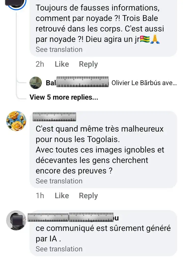 Des corps ont été repêchés dans la lagune de Bè et le 4e lac, dans des circonstances troublantes. Des balles réelles auraient été tirées dans plusieurs quartiers, selon de nombreux témoins. Pourtant, aucun chiffre de victimes n’est mentionné dans le communiqué du gouvernement.