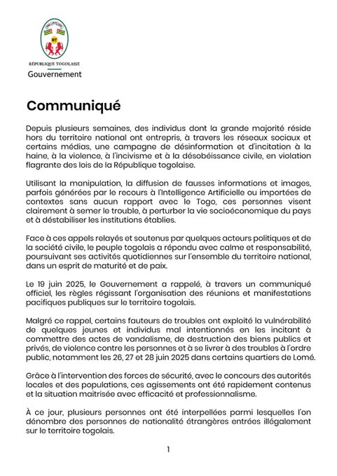 Alors que la société civile togolaise dénonce la mort d’au moins sept personnes, dont des mineurs, après les récentes manifestations à Lomé, le communiqué publié par le gouvernement ce dimanche 30 juin a ravivé l’indignation. Les autorités attribuent les décès à de simples noyades, et évoquent une campagne de désinformation venue de l’étranger. Des affirmations rejetées en bloc par des voix médicales et citoyennes, qui dénoncent une manipulation de la vérité.