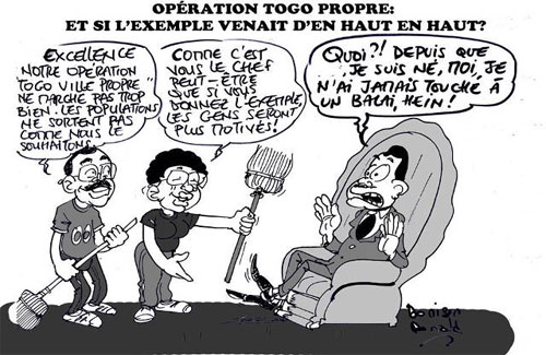 En novembre 2014, le gouvernement togolais avait senti la nécessité d’instaurer l’«Opération Togo propre » dont l’objectif est d’inculquer les valeurs civiques à la population. Ainsi chaque 1er samedi du mois, chaque citoyen est censé se livrer à une opération de nettoyage de son environnement immédiat, mais aussi nettoyer d’autres quartiers de sa ville dans un grand élan populaire.